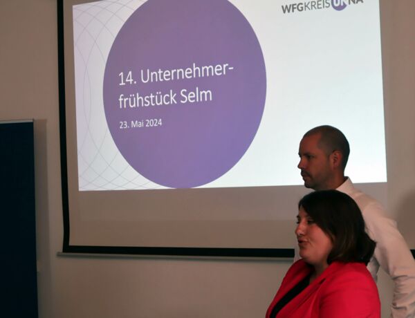 Die große Welt der Fördermöglichkeiten wurde beim 14. Unternehmerfrühstück über 20 Interessierten nähergebracht. Zu dem Frühstück hatten erneut die Stadt Selm und die Wirtschaftsförderungsgesellschaft für den Kreis Unna mbH (WFG) gemeinsam in den Raiffeisensaal an der Ludgeristraße eingeladen. Laura Kleine-Wilke und Dr. Kai Pflanz von der NRW.Bank führten in das Thema ein.