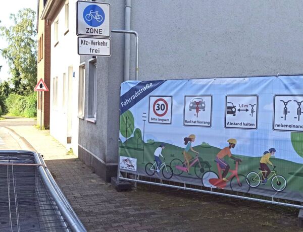 Im April 2019 wurde die erste Fahrradstraße in Selm freigegeben. Auf einem ca. 450 Meter langen Teilstück der Waltroper Straße haben seitdem Radfahrer „Vorfahrt“ vor dem PKW-Verkehr. „Wir haben aber leider festgestellt, dass auch nach über vier Jahren noch immer nicht alle Verkehrsteilnehmer wissen, wie sie sich auf einer Fahrradstraße verhalten sollen“, so Jan Schimmelpfennig von der Stadtverwaltung. Daher wurden nun große Banner aufstellt, die auf die Besonderheiten der Fahrradstraße aufmerksam machen sollen.