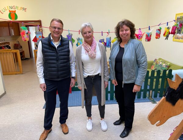 Bürgermeister Thomas Orlowski und Beigeordnete Sylvia Engemann haben die Kindertageseinrichtung St. Stephanus in Bork besucht. Die Leiterin Martina Martini führte beide durch die Einrichtung und zeigte die Räume und den großen Außenbereich. „Ich habe mich besonders über das Stuhlkreisgespräch mit den Kindern gefreut“, erklärte Thomas Orlowski nach dem Besuch. Ein weiteres Thema war das laufende Anmeldeverfahren der Kindertageseinrichtungen und mögliche neue Betreuungskonzepte.