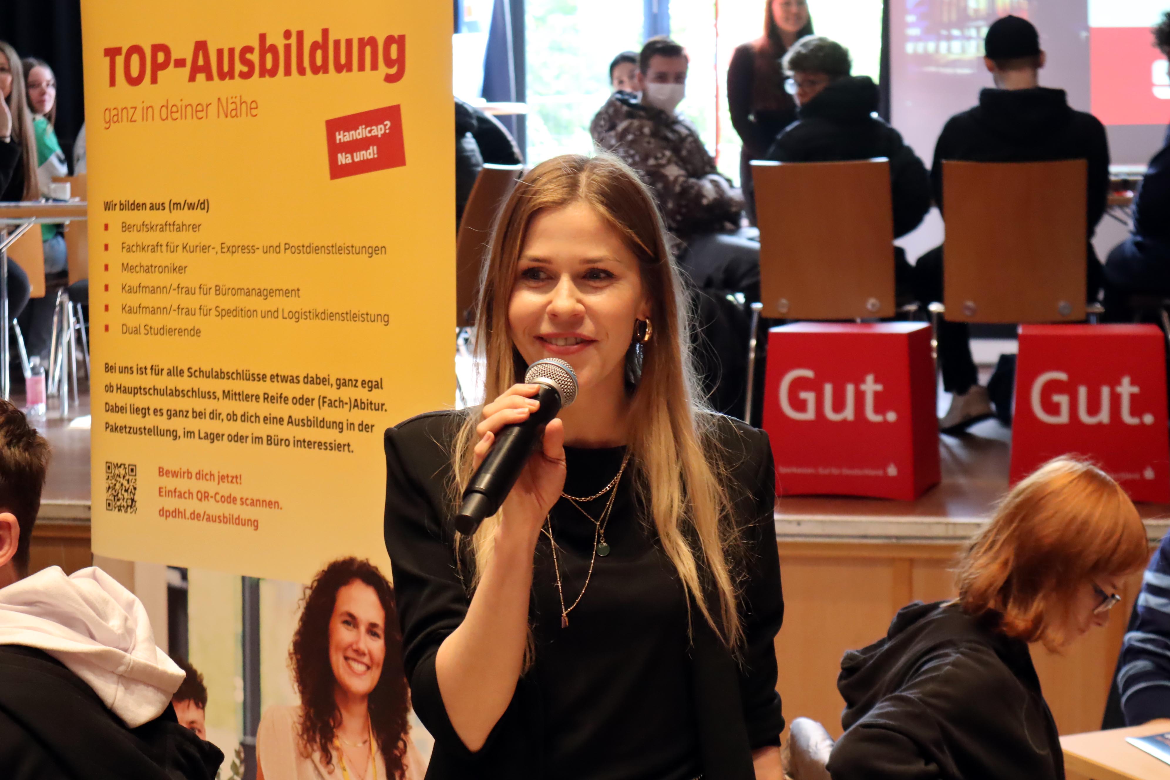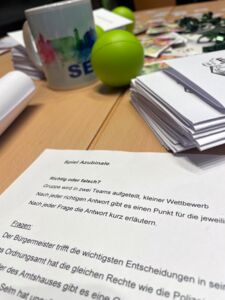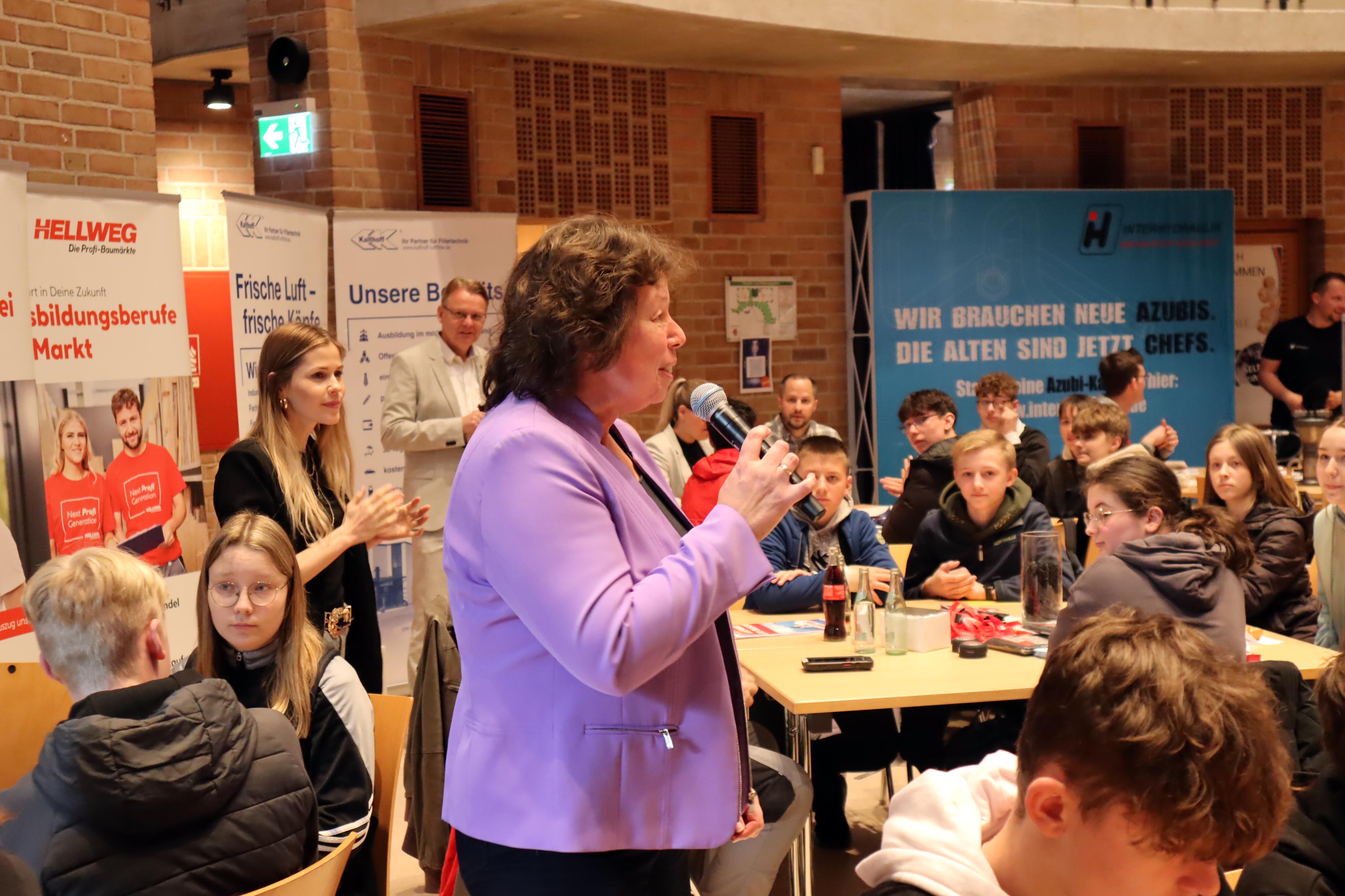 Bürgermeister Thomas Orlowski begrüßte die Schülerinnen und Schüler und ermutigte sie, sich intensiv Gedanken über die Zeit nach der Schule zu machen. „Eine Ausbildung kann selbst vor dem Beginn eines möglichen Studiums eine Option sein. Daher nutzen Sie die Chance und machen eventuell Praktika, damit sie sehen, was ihnen liegt oder was nicht.“ Seinen Dank richtete er an die beteiligten Firmen. „Für sie bietet sich hier eine Chance, passenden Nachwuchs zu finden.“ Carina Eller, die das „Übergangsmanagement Schule und Beruf und Netzwerkkoordination kommunale Präventionsketten“ für die Stadtverwaltung betreut, hatte die diesjährige Azubinale organisiert. Auch sie dankte den Firmen für ihren Einsatz bei der Azubinale sowie den Schülerinnen und Schülern für ihre Neugierde an den verschiedenen Tischen.