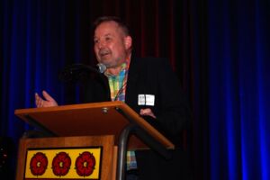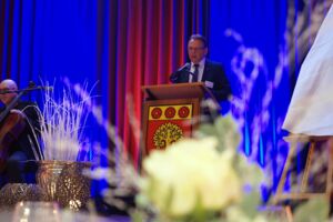 „Die Leidenschaft für Kunst wurde früh bei ihm geweckt“, so Davids ohne zunächst den Namen des Preisträgers zu verraten. Schon als Kind und Jugendlicher war die Kunst ein großes Anliegen. „1982 gründete er einen eigenen Verlag in Selm und hat seitdem bis heute 125 Millionen Reproduktionen seiner Bilder verkauft“, lieferte Davids beeindruckende Zahlen. Die Kunst und Kultur führte den Preisträger in die ganze Welt, heimatverbunden sei er aber bis heute. Seine Großskulpturen, ob in Selm oder am Kamener Kreuz kenne wirklich jeder.