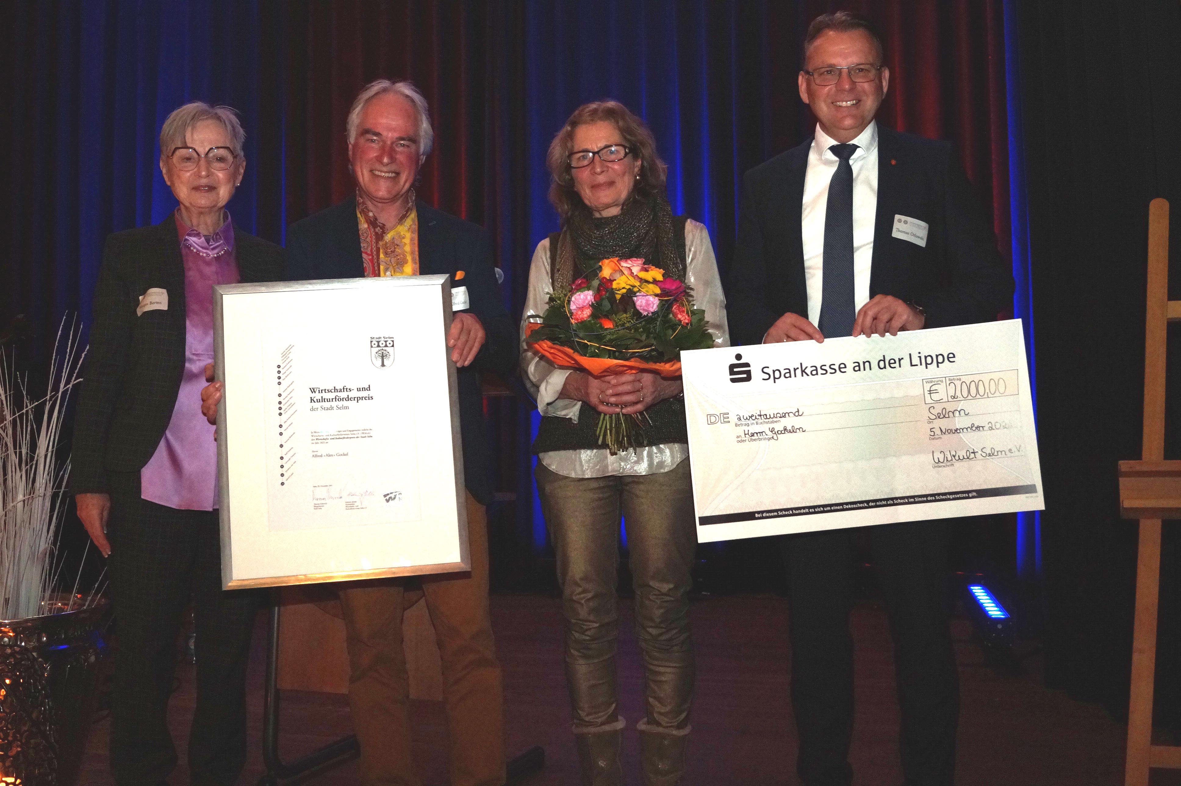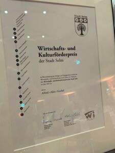 Freudestrahlend nahm Alfred Gockel, der von allen eigentlich nur „Alex“ genannt wird, den Preis entgegen. „Dass ich diesen Preis meiner Heimatstadt entgegen nehmen darf, macht mich stolz. Ich bin noch immer mit ganzem Herzen in Selm“, so Gockel. Deshalb wolle er das Preisgeld für eine kulturelle Veranstaltung im kommenden Jahr in Selm nutzen. „Lasst uns gemeinsam aus dieser Stadt etwas Großes machen“, rief er den Gästen zu.
