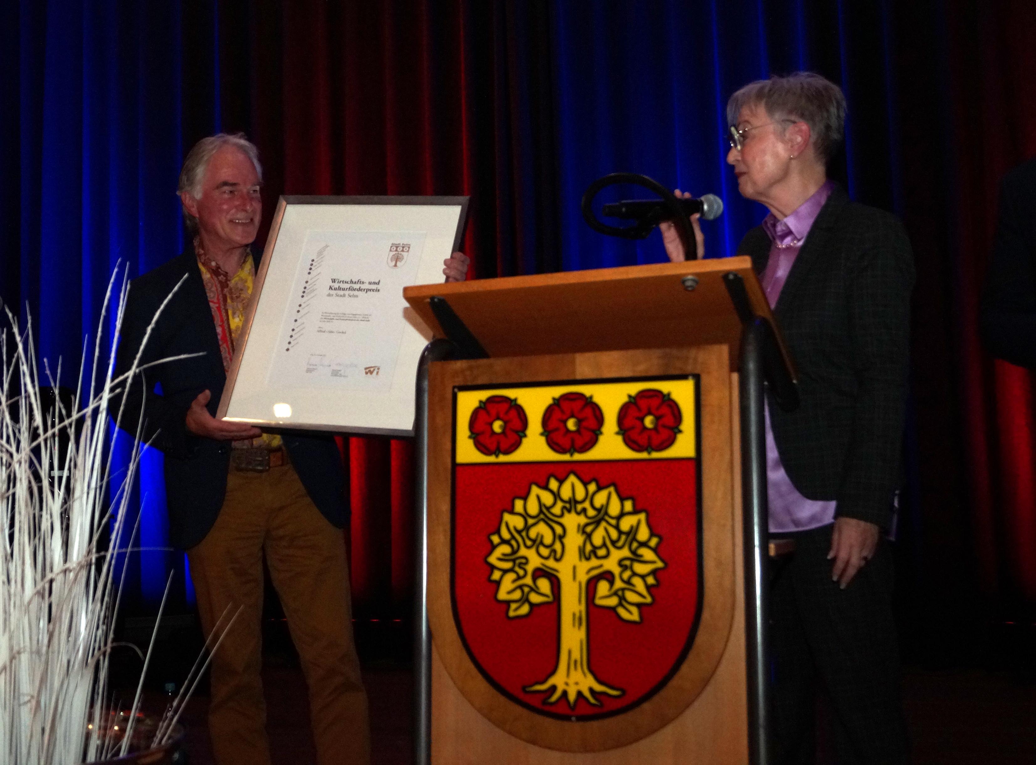 Margot Berten, Mitglied im Vorstand des WiKulT, erinnerte an die lange Geschichte des Preises und begrüßte die letzte Preisträgerin, Elisabeth vom Hofe. „Das letzte Mal hatten wir eine Preisträgerin aus dem Bereich der Wirtschaft, nun ist also wieder die Kultur an der Reihe“, so Berten. Und dass Kunst und Kultur beim Preisträger Hand in Hand gehen, machte Christoph Davids in seiner Laudatio deutlich.