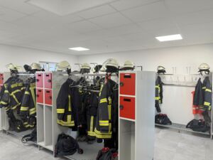 Vorbei sind nun die Zeiten der beengten Verhältnisse an der Püttstraße. Die nicht vorhandene Schwarz-Weiß-Trennung war einer der Gründe, warum ein Anbau erforderlich geworden war. „Der Brandschutzbedarfsplan hatte uns die Mängel aufgezeigt und zum Handeln aufgefordert. Klar war recht schnell, dass eine Verlagerung des Standortes keine Option ist sondern der Standort hier erhalten werden soll. Der Löschzug Hassel ist nämlich nicht nur für die Brandschutzvorsorge wichtig sondern auch als Ort der sozialen Zusammenkunft“, berichtete Bürgermeister Thomas Orlowski.