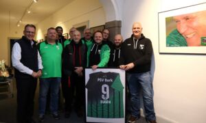 Wahre Schwergewichte hängen seit dieser Woche an den Wänden im ersten Stock des Altbaus im Amtshaus Bork. Klar, dass zur Ausstellungseröffnung ein großer Teil der Heavy Kickers vor Ort war. 2019 gegründet, hat sich die Mannschaft, die Teil des PSV Bork ist, innerhalb kurzer Zeit weit über die Grenzen der Stadt einen Namen gemacht. Bei den Heavy Kickers handelt es sich nämlich um eine der ersten Mannschaften, die nur aus Übergewichtigen besteht. So haben die Fußballbegeisterten die Möglichkeit, ihren Lieblingssport trotz des ein oder anderen Kilos zu viel weiter auszuüben.