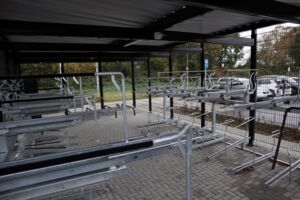 Vorbei sind nun die Zeiten, wo Parkplätze am Bahnhof weder ausgewiesen noch befestigt gewesen sind. Stattdessen steht für Pendler und Bahnreisende ein neuer Parkplatz mit über 70 Stellplätzen zur Verfügung. Auch zwei Ladesäulen für E-Fahrzeuge können die Pendler ab sofort nutzen. 40 Plätze bietet das neue Radparkhaus. Dieses kann mittels eines Chips geöffnet werden und ist videoüberwacht. So steht das eigene Fahrrad sicher und wettergeschützt. Im kommenden Jahr wird zudem eine Ladestation für Lastenräder installiert. So können diese ebenfalls im Parkhaus sicher abgestellt und geladen werden. Für persönliche Utensilien wie Helme oder Regenkleidung gibt es abschließbare Schränke, wo gleichzeitig der Fahrradakku geladen werden kann. Der Chip für das neue Radparkhaus kann in ein paar Wochen über die Radstation der AWO am Bahnhof-Beifang erworben werden.