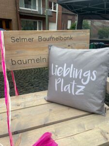 Die Bänke sind dank Rollen an einer Seite mobil und können so an unterschiedlichen Standorten aufgestellt werden. „Wir wünschen uns, dass sie in allen Stadtteilen und Ortsteilen aufgestellt werden“, so Elisabeth Sandmann. Den Namen Baumelbank verdient das Möbel, weil die Sitzposition so hoch ist, dass die Beine baumeln können. Was man noch alles mit der Bank anstellen kann, außer sitzen und Beine und Seele baumeln lassen, zeigten Schülerinnen des Städtischen Gymnasiums. Diese hatten sich eigens für die Bank leichte Fitnessübungen ausgedacht, die von jedem ausgeführt werden können. Alle Bänke werden in Kürze einen QR-Code erhalten, wo die Übungen erläutert werden.