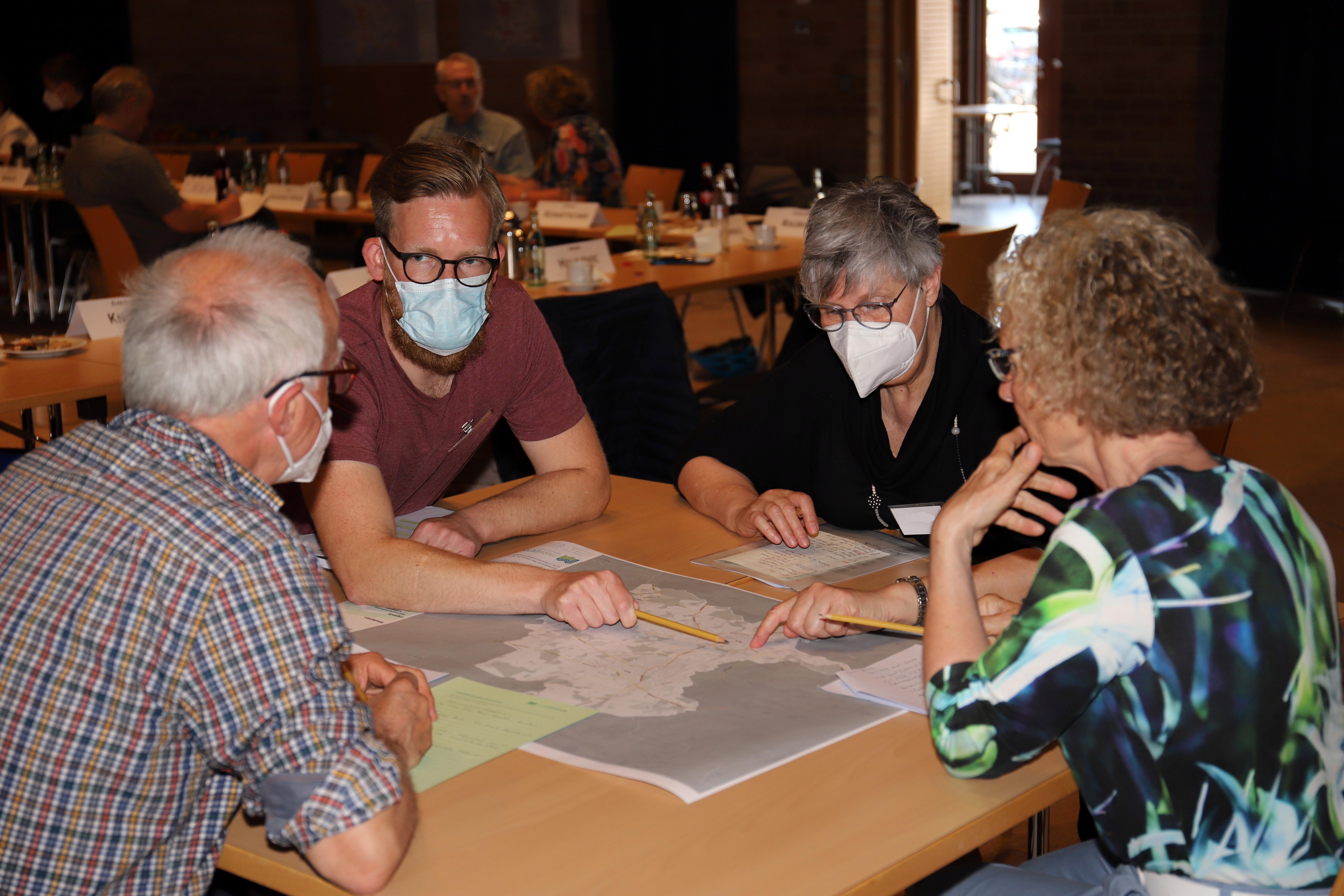 Nach vier Stunden intensiver Arbeit gab es noch eine kleine Abschlussrunde. Mark Schwalm zeigte sich über die „rege und konstruktive Beteiligung der Teilnehmenden sehr erfreut“ und sieht in dem „zufällig zusammengesetzten Teilnehmerkreis große Vorteile für eine systematische Bürgerbeteiligung“.