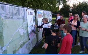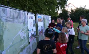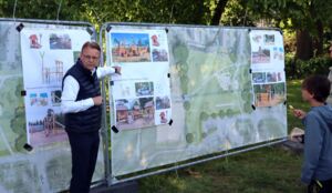 Rolf Suhre vom Planungsbüro nts erklärte mögliche Varianten zur Gestaltung. „Wir haben viele Ideen entgegengenommen. Klar ist, dass der vorhandene Baumbestand bleiben soll. Bei den Spielgeräten wollen wir den Schwerpunkt auf alle Altersgruppen legen“, so Suhre. Auch integrative Spielmöglichkeiten für Kinder mit Beeinträchtigungen oder Senioren sind angedacht. Mit Klebepunkten konnten die Anwesenden anschließend ihre gewünschten Schwerpunkte festlegen – soll es neben der Grundausstattung lieber ein großes Kletterschiff oder mehrere kleinere Elemente geben? Eifrig setzten Eltern und Kinder die Punkte und wählten ihre Favoriten. Sechs Pakete standen zur Auswahl.