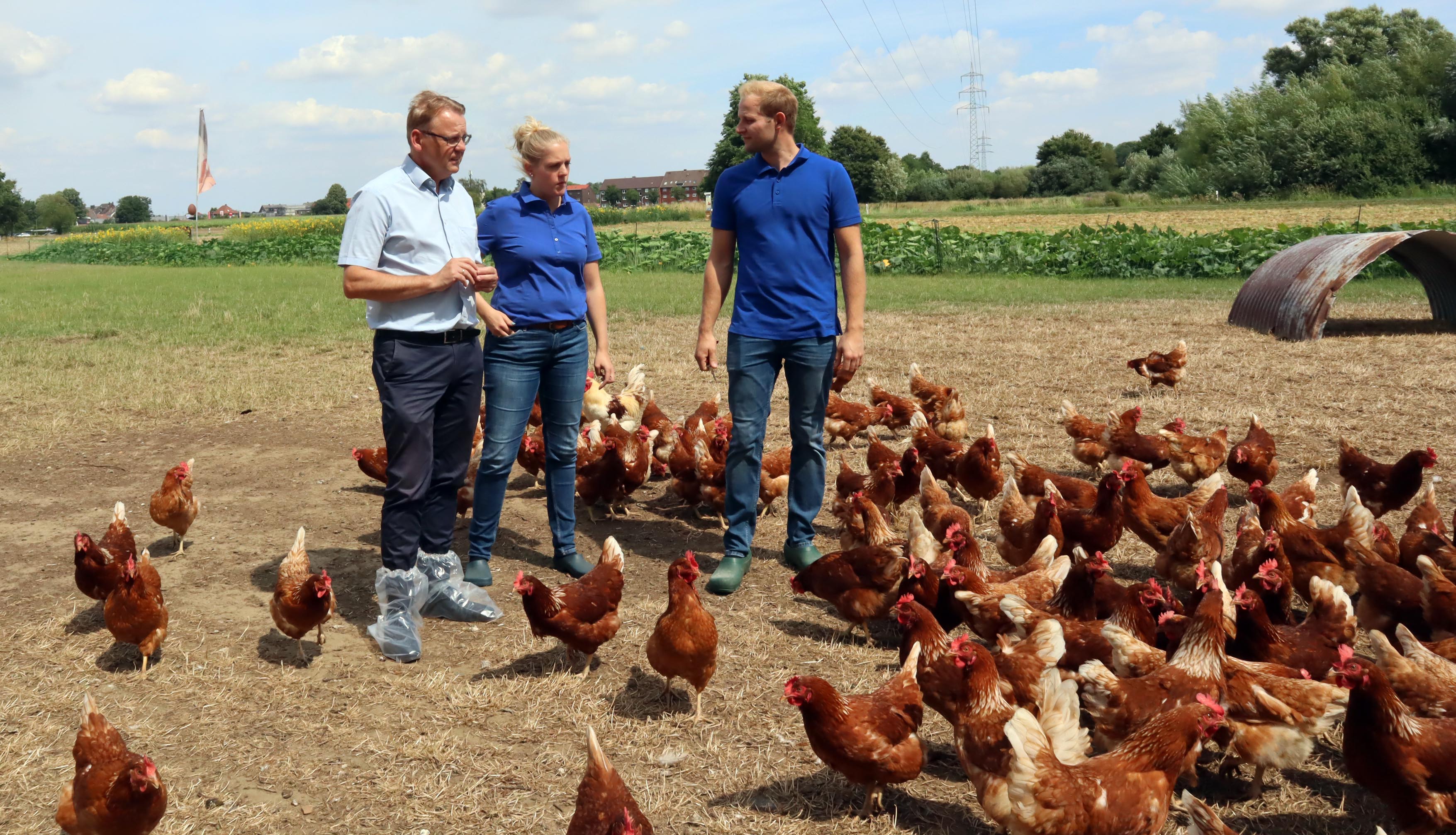 Wie kommt das Ei vom Huhn in die Verpackung und dann zum Kunden? In Selm auf dem Hof Gremme kann das hautnah erlebt und beantwortet werden. Bürgermeister Thomas Orlowski war nun auf Einladung von Stefanie und Daniel Gremme vor Ort und schaute sich den Hof einmal genau an.