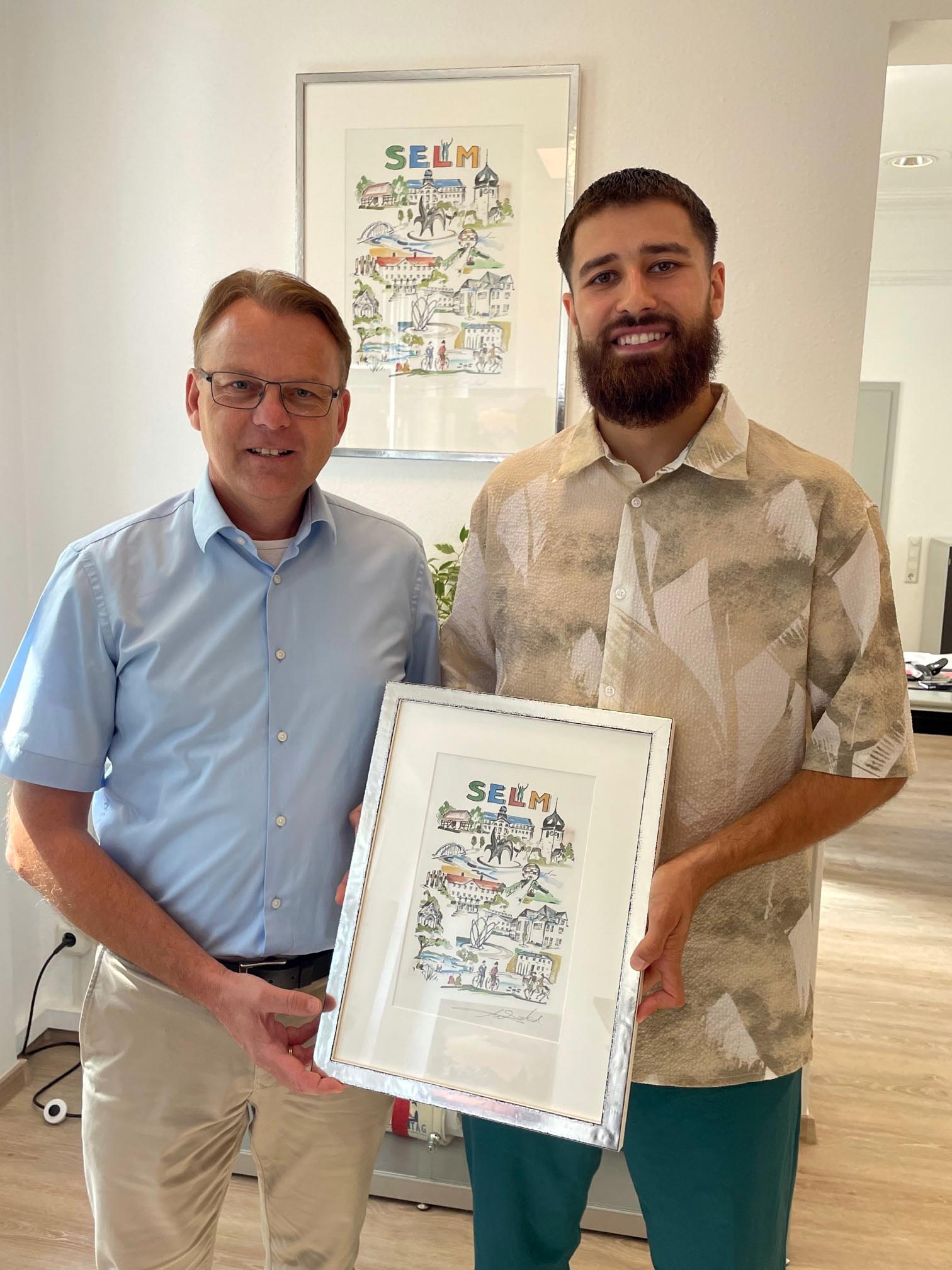 Der 24-jährige Al Amin Rmadan ist zweifacher Weltmeister und einfacher Europameister im Kickboxen. Dazu kommen sechs Europameistertitel im Taekwondo. Mit 17 Titeln hält er zudem den Rekord für die meiste Anzahl an Titeln bei Deutschen Meisterschaften im Jugend- und Seniorenbereich Kickboxen. Im April feierte er mit dem EM-Titel im Taekwondo seinen aktuellsten Erfolg. Als Anerkennung für seine Leistungen überreichte Thomas Orlowski ihm ein signiertes Selm-Bild des Künstlers Alex Gockel.