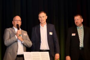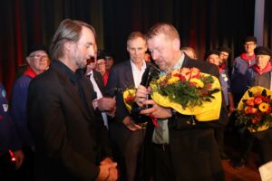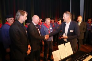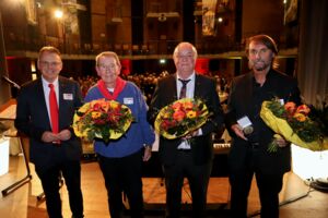 Große Verdienste für ihre Heimat haben die drei Männer erworben, die zum Schluss des offiziellen Teils mit der Freiherr-vom-Stein-Medaille ausgezeichnet wurden. Egon Schmidt, Hans W. Schumacher sowie Pater Tobias Breer haben sich in den vergangenen Jahren bzw. sogar Jahrzehnten für die Stadt Selm und ihre Menschen in besonderer Weise eingesetzt. Egon Schmidt unter anderem als langjähriges Ratsmitglied und stellvertretender Bürgermeister sowie in leitender Funktion bei mehreren Vereinen. Ohne Hans W. Schumacher würde die Selmer Chorlandschaft deutlich ärmer aussehen. Auch sein jahreslanges Engagement für die Stiftung „Menschen für Menschen“ sei beispielhaft gewesen. Und mit Pater Tobias Breer wurde ein Geistlicher geehrt, der mit seinen Marathons bereits über 2 Millionen Euro Spendengelder erlaufen hat. Viele tausend Euro davon sind in den vergangenen Jahren dank des Gottfried-Marathons in Cappenberg in Selm verblieben. Ihnen allen dankte Bürgermeister Thomas Orlowski für ihren Einsatz.