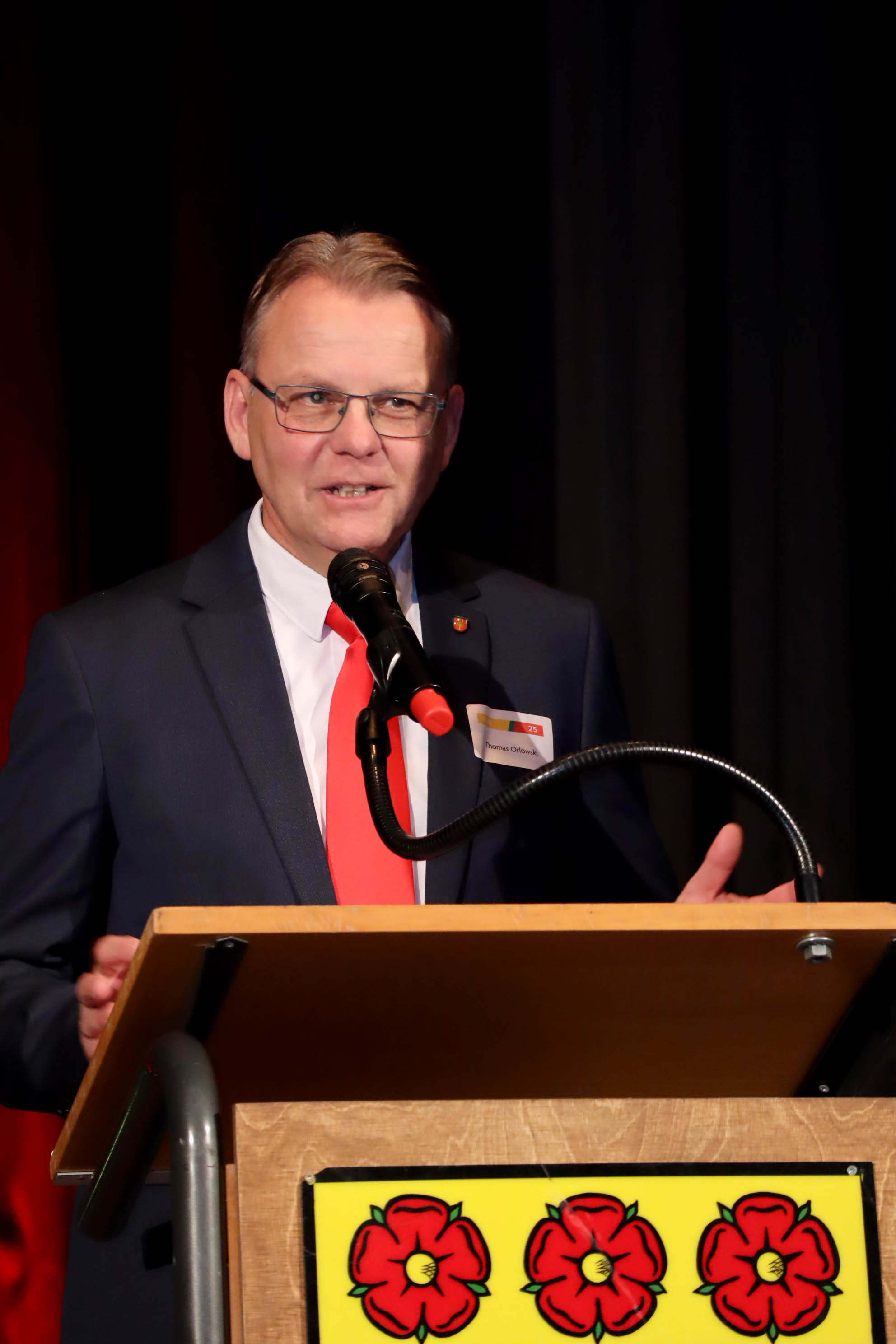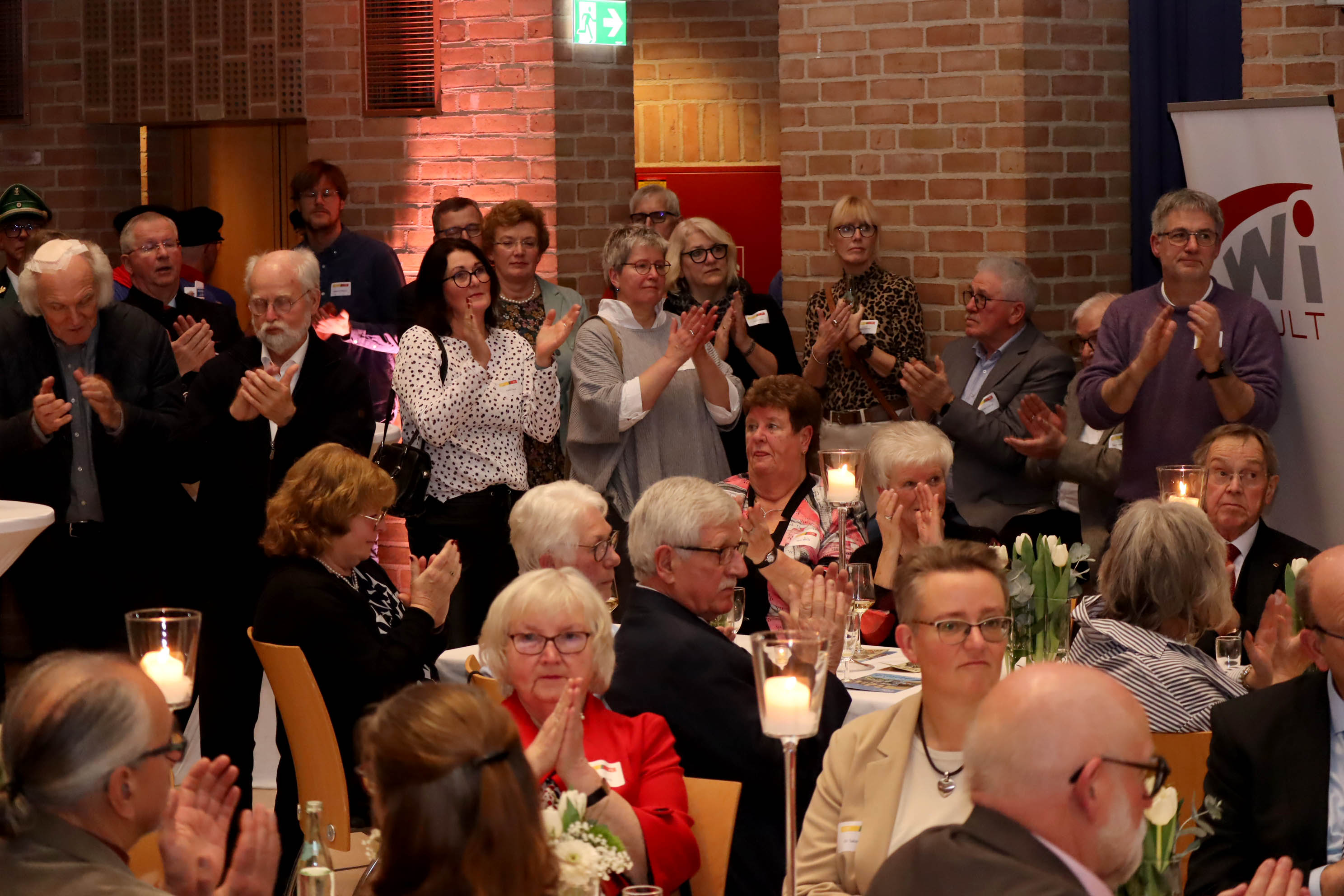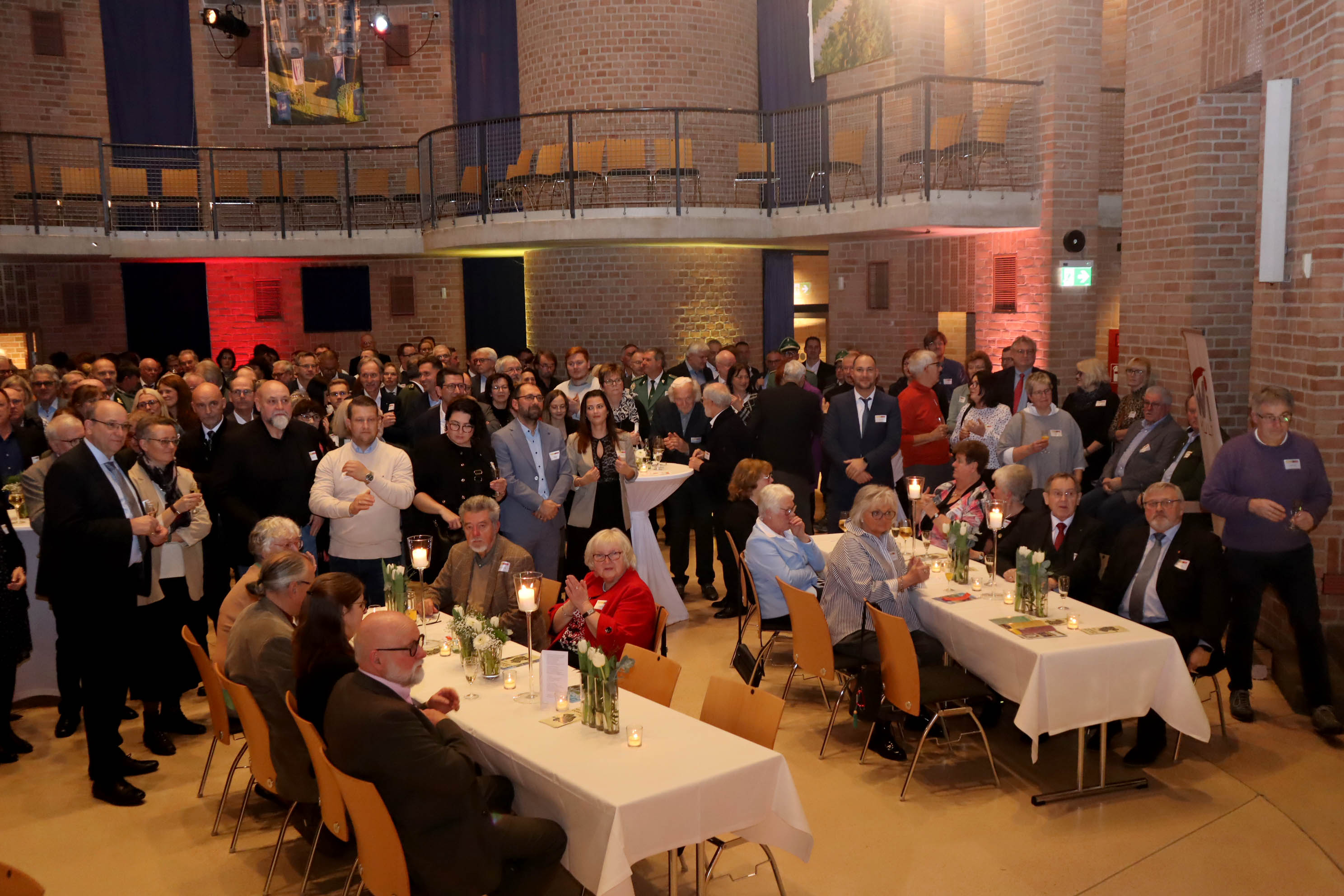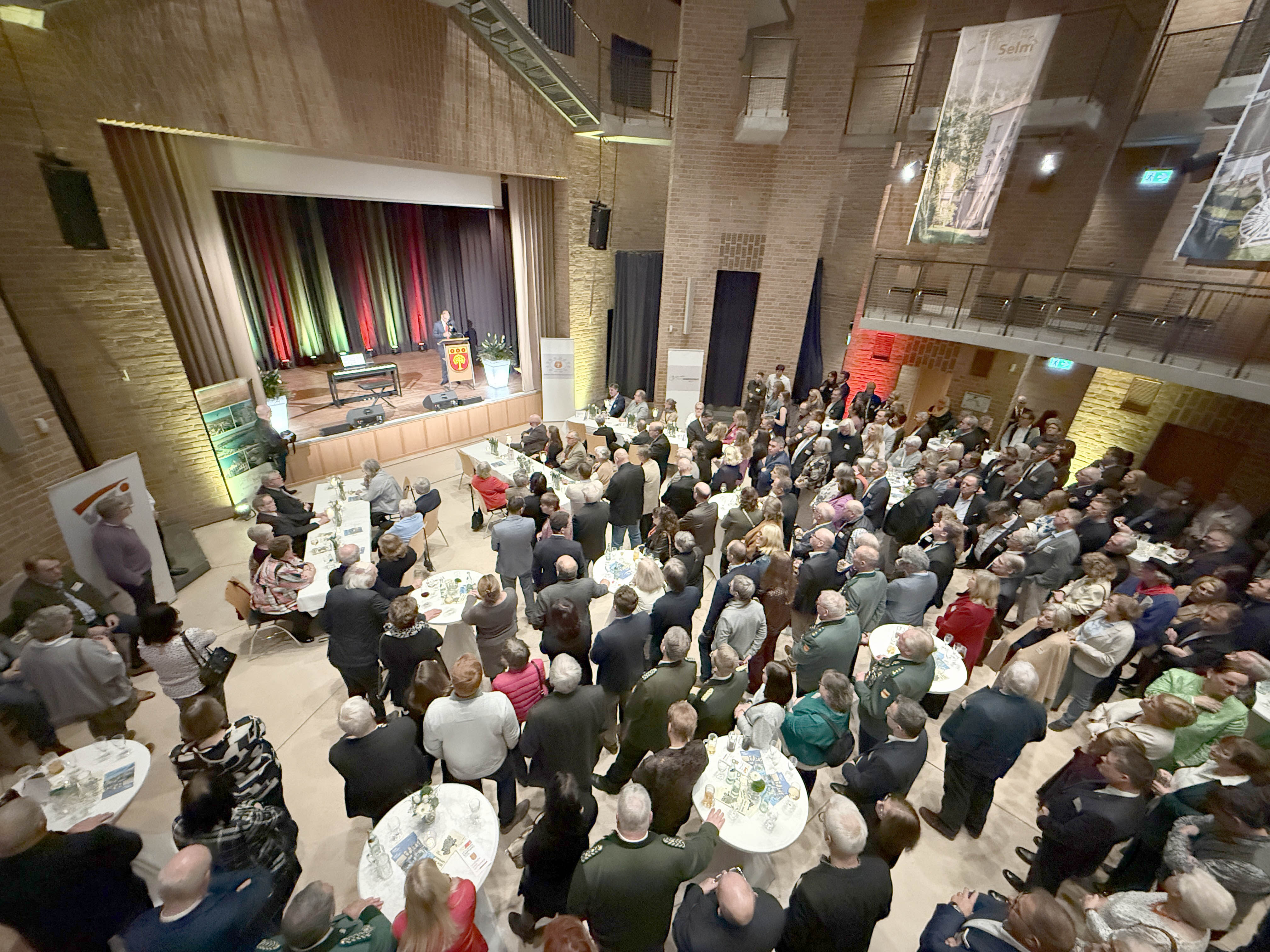 350 Gäste hatten sich am vergangenen Freitag im festlich geschmückten Bürgerhaus eingefunden, um den traditionell gemeinsam durch die Stadt Selm, Werbegemeinschaft, Handwerksmeisterrunde und dem Wirtschafts- und Kulturförderverein ausgerichteten Neujahrsempfang zu besuchen. Zu den Ehrengästen zählten unter anderem der Bundestagsabgeordnete Michael Thews, der Landtagsvizepräsident Rainer Schmeltzer, Landrat Mario Löhr sowie Selms Ehrenbürger Norbert Rethmann. Bürgermeister Thomas Orlowski hob in seinem Grußwort passend zum Leitthema des Abend die Bedeutung des Begriffs Heimat hervor.