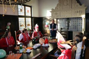 Zur festen Tradition im Selmer Karneval gehört der Besuch der Stadtprinzenpaare in der Stadtverwaltung. Mit dreimal „Selm Helau“ kündigten sich die Karnevalisten mit den beiden Prinzenpaaren Marc I. und Laura I. sowie Lukas II. und Sophie I. an der Spitze am Dienstag an und wurden von Bürgermeister Thomas Orlowski in Empfang genommen. Im bunt geschmückten historischen Sitzungssaal ging der Blick nach vorne zum Höhepunkt des Selmer Karnevals: dem Umzug am kommenden Samstag.