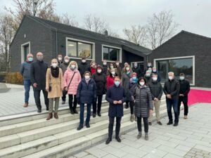 Mitarbeiter der Verwaltung stellten die einzelnen Bausteine, wie Skateranlage, umgebautes Sunshine, neue Zweifachturnhalle oder die im Umbau befindliche Multifunktionshalle, vor. Beim anschließenden Austausch im neuen Umkleidegebäude dankte der Vorstandssprecher des Landwirtschaftlichen Ortsvereins, Friedhelm May, für die Informationen. Gleichzeitig betonte er die Bedeutung der heimischen Landwirtschaft. „Regional erzeugte Produkte sind auch ein Beitrag für den Klimaschutz. Das was vor Ort produziert wird, muss nicht eventuell viele tausend Kilometer mit Schiff, Bahn oder per LKW nach Deutschland transportiert werden.“