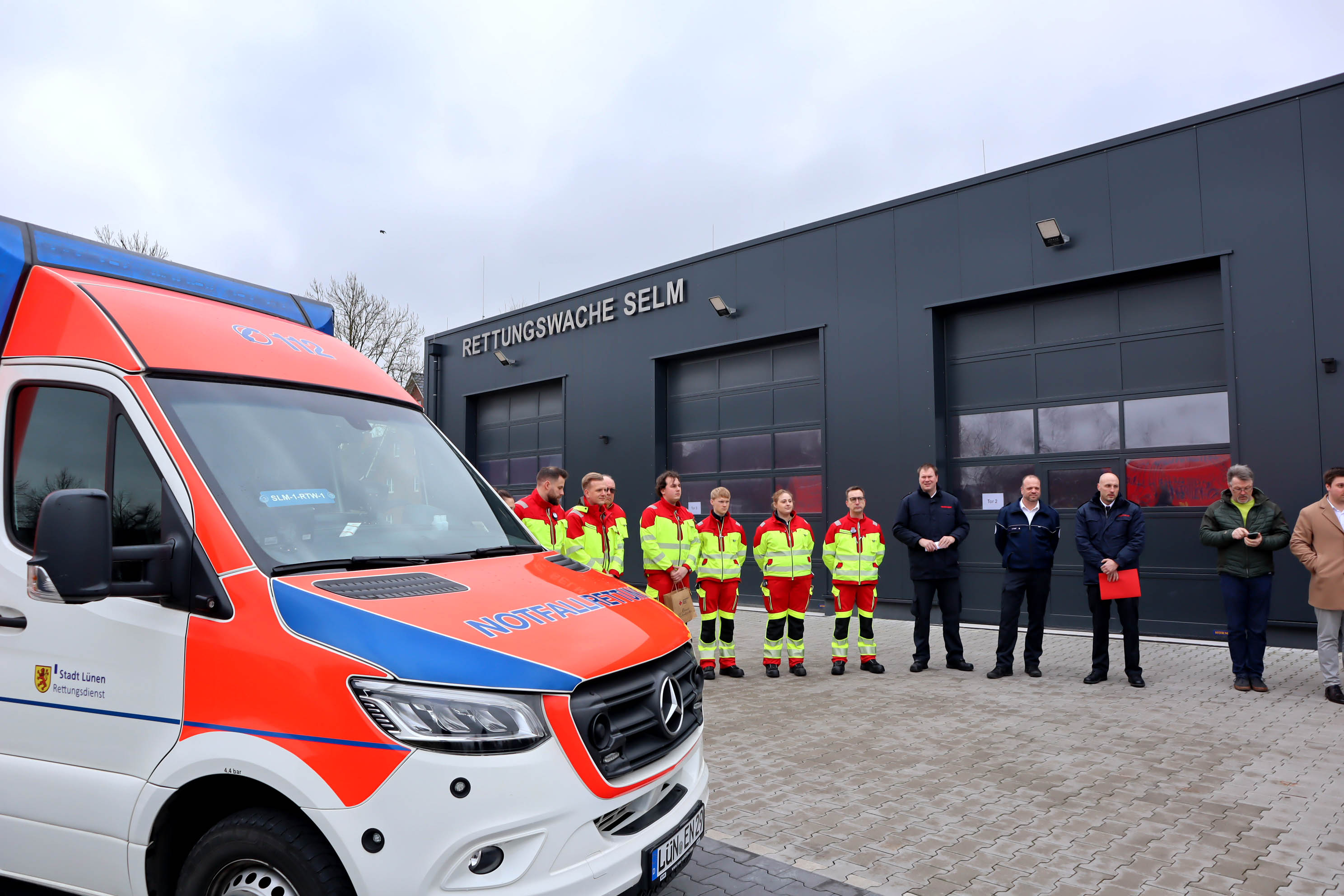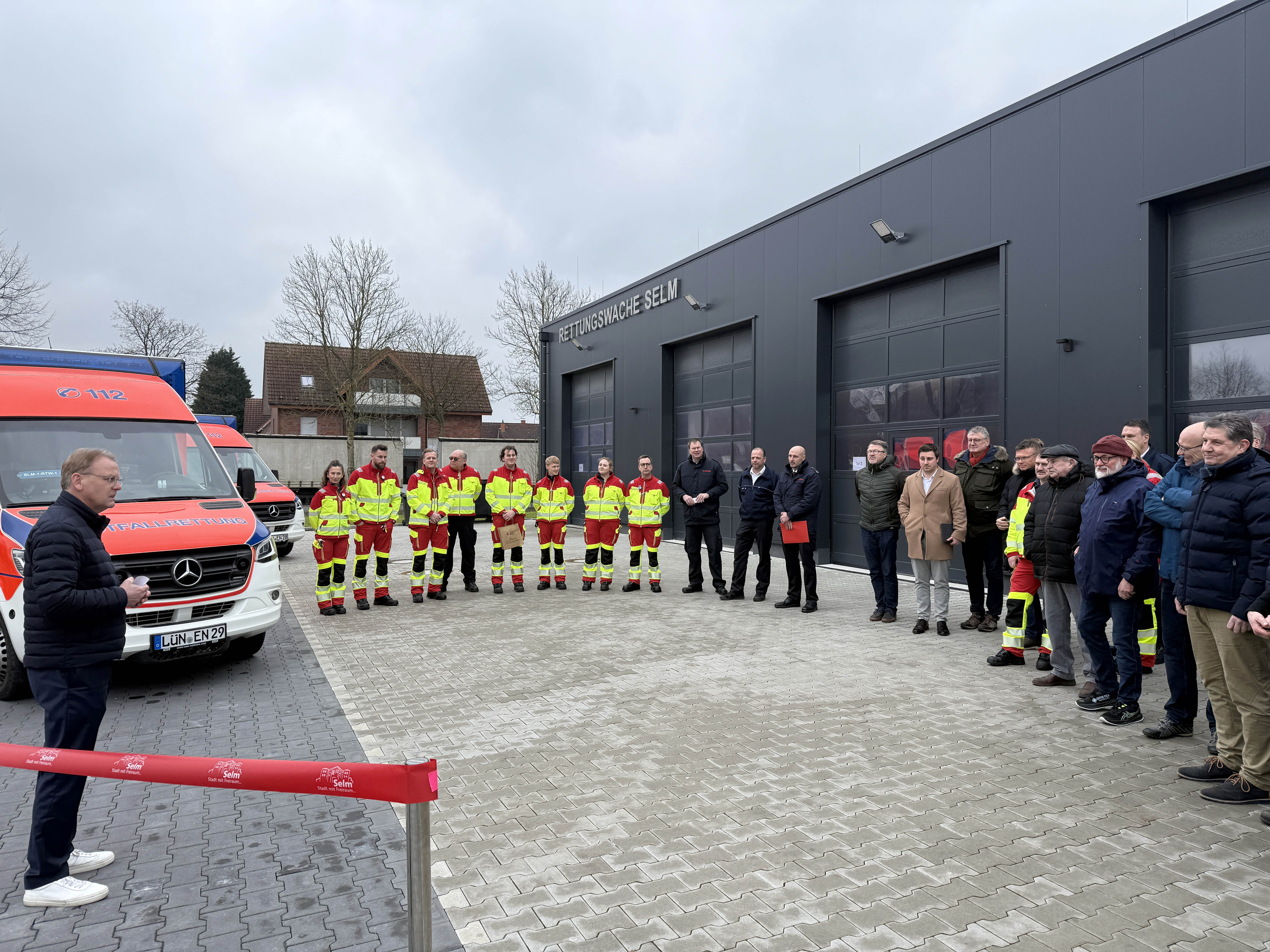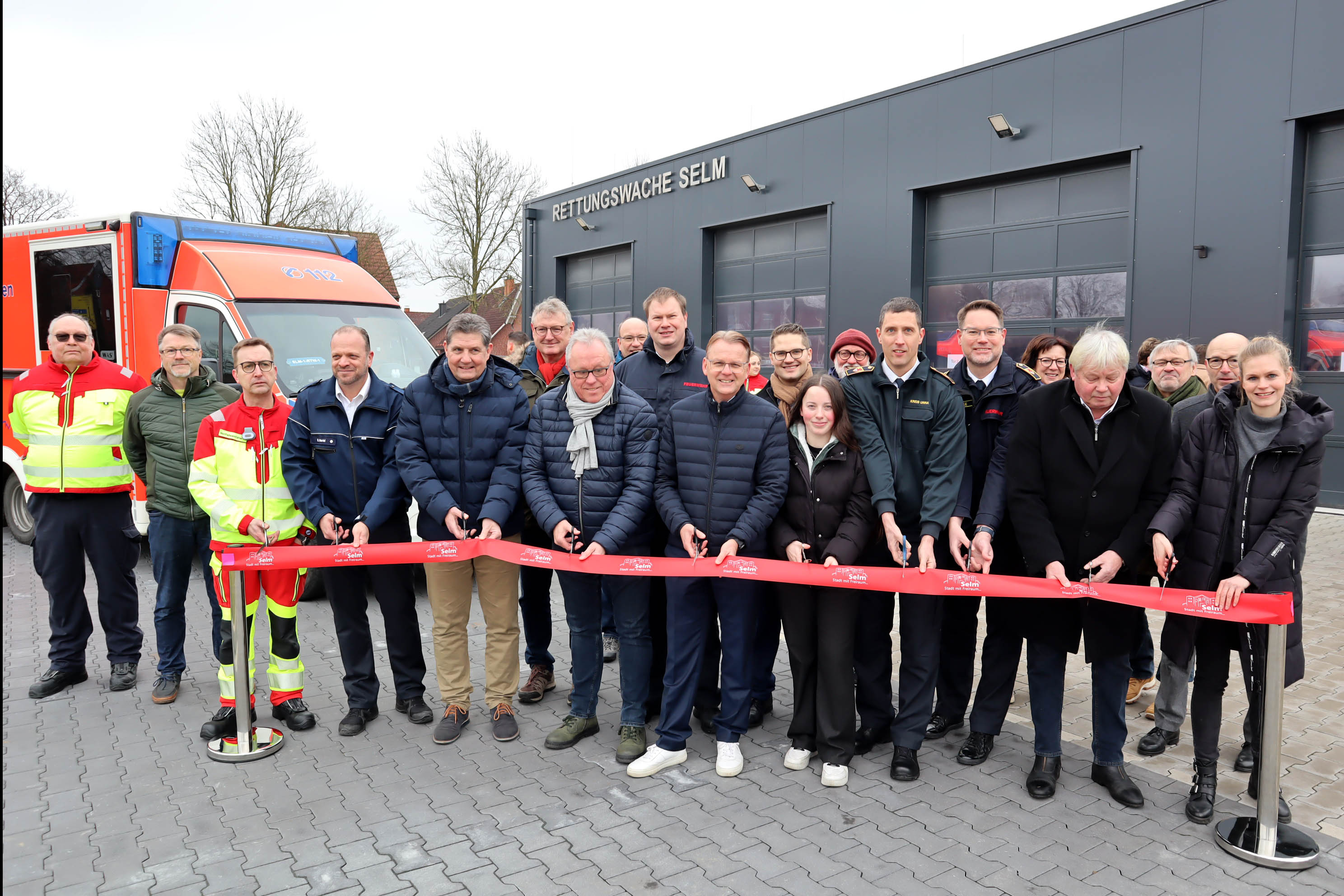 Eine weitere Investition in die Sicherheit und Versorgung der Selmer Bevölkerung wurde nun freigegeben - die neue zentrale Rettungswache. „Das ist ein Meilenstein für die Sicherheit der Bevölkerung“, erklärte Bürgermeister Thomas Orlowski gegenüber den geladenen Gästen aus Politik, Verwaltung, Firmen sowie Projektbeteiligten. Durch den Neubau werden die Hilfezeiten nun deutlich verbessert werden können. Zuletzt gab es zwei Standorte mit Rettungswagen in Selm. Einen in Bork am Feuerwehrhaus und einen in Selm auf der Ludgeristraße. Da die Hilfszeiten in der Vergangenheit nicht das gesetzlich vorgeschriebene Maß erreicht hatten, musste entsprechend reagiert werden mit dem Neubau am Kreisverkehr Zeche-Herrmann-Wall/Kreisstraße. „Mein Dank gilt heute allen Projektbeteiligten und vor allem den hier stationierten Rettungssanitätern“, so Thomas Orlowski.