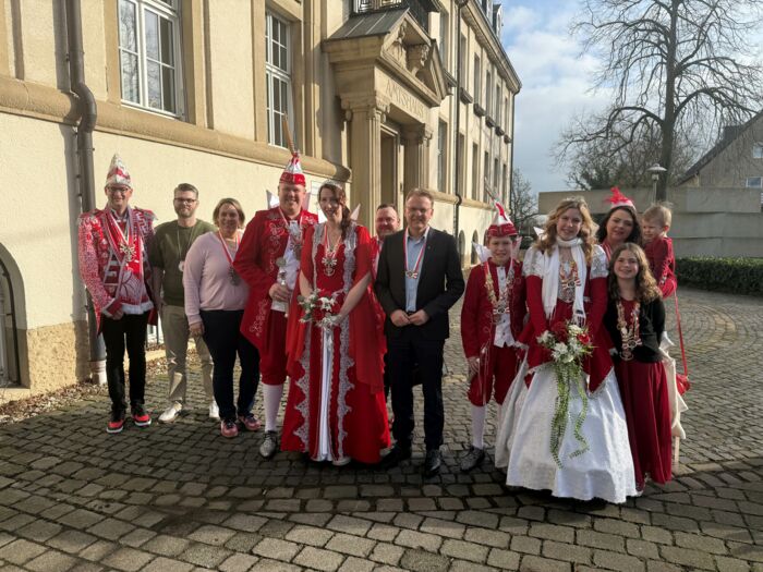 Närrische Grüße überbrachten die Selmer Karnevalsprinzenpaare am Dienstagmorgen der Stadtverwaltung. Das große Prinzenpaar Sebastian I. und Christina II. sowie das Kinderprinzenpaar Prinz Lean I. und Prinzessin Lana I. waren bei ihrer traditionellen Tour wieder als erstes in das Amtshaus gekommen und wurden von Bürgermeister Thomas Orlowski herzlich empfangen. „Der Karneval hat in Selm eine lange Tradition und eine große Bedeutung. Ich freue mich schon auf den Umzug am Samstag und auf die vielen Besucher aus Selm und Umgebung, die den Umzug besuchen werden. Der Dank gilt allen Beteiligten, die sich für das Gelingen dieses Umzugs in den vergangenen Monaten eingesetzt haben“, so Thomas Orlowski.