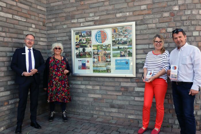 Seit einigen Tagen hängt ein großer Schaukasten an der Außenfassade der Volksbank. Darin sind Fotos von Fahrten des Städtepartnerschaftsvereins sowie Informationen des Vereins zu finden. „Der Standort hier ist optimal, da der Kreisverkehr ja bereits die Verbindung zu unseren Partnerstädten symbolisiert. Wir danken der Volksbank Selm-Bork, dass wir diesen Kasten an der Außenfassade anbringen durften“, erklärt die Vorsitzende des Städtepartnerschaftsvereins, Monika Zientz.