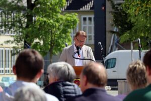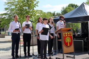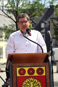 Der stellvertretende Bürgermeister Michael Feige begrüßte im Namen des Rates und hob die Bedeutung der Demokratie hervor. „Demokratie ist die Staats- und Gesellschaftsform, die die Menschenwürde, die Menschenrechte, grundlegende Werte wie Freiheit und Gleichheit und auch den Wohlstand am besten schützt und ermöglicht. Ganz zentral bei der Gleichheit ist die Anerkennung der Menschenwürde“, so Michael Feige. Er erinnerte daran, dass alle Menschen frei und gleich an Würde und Rechten geboren sind. Wichtig sei aber in diesem Zusammenhang, dass Demokratie auch verteidigt werden müsse. Daher sei es wichtig, vom Wahlrecht Gebrauch zu machen.