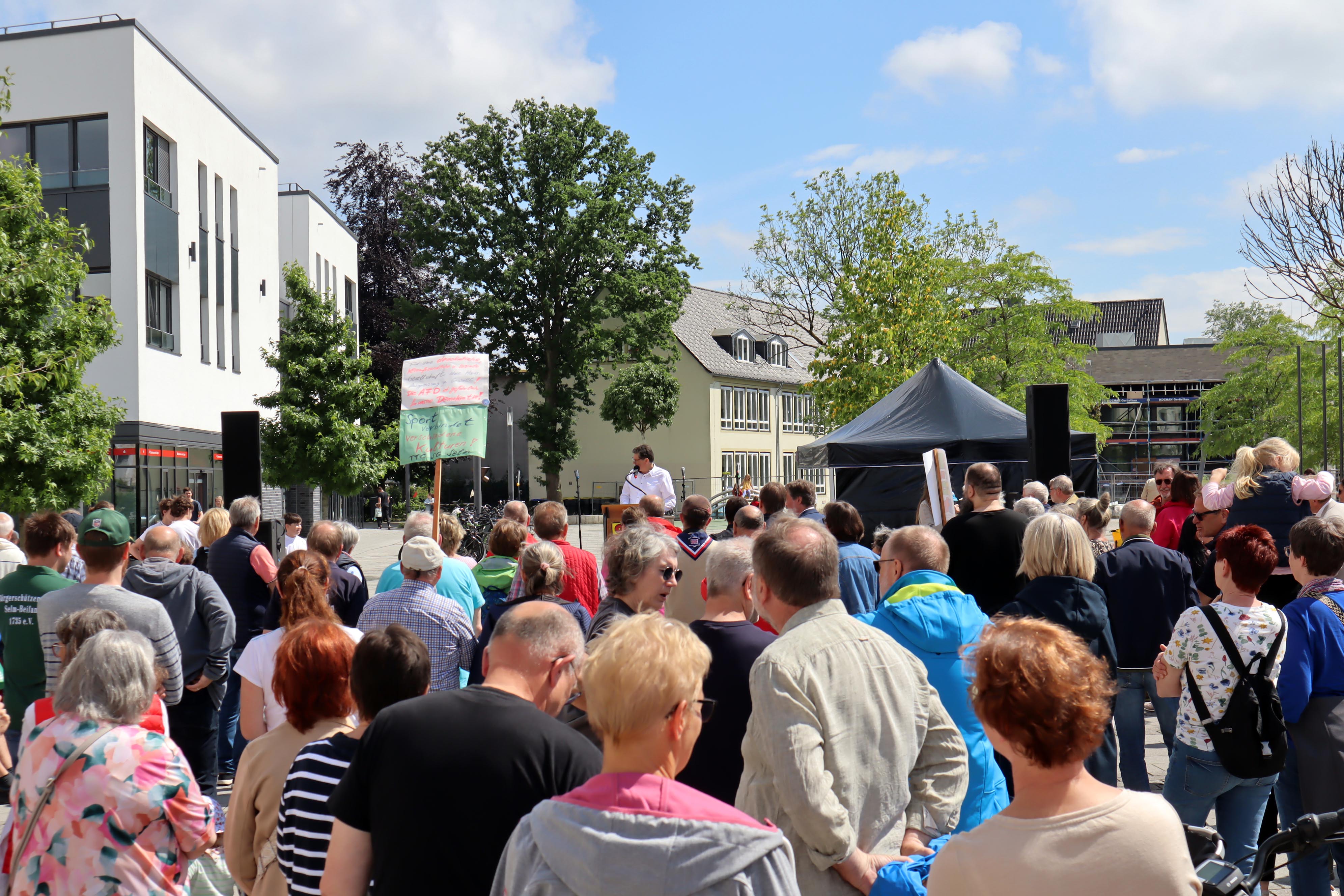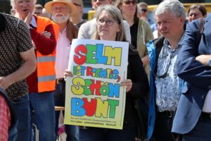 In gut zwei Wochen findet die Europawahl statt. Am Sonntag, 9. Juni, sind auch alle wahlberechtigten Selmerinnen und Selmer aufgefordert, ihr Kreuz zu machen. Die Europawahl ist gelebte Demokratie. Und warum diese so wichtig ist, wurde am Samstag auf dem Campus deutlich. Die Stadt und der Rat der Stadt Selm hatten zusammen mit zahlreichen Selmer Vereinen und Institutionen zur Kundgebung „Gemeinsam für Demokratie“ eingeladen. Knapp 200 Teilnehmer folgten der Einladung und setzten ein Zeichen gegen Extremismus.