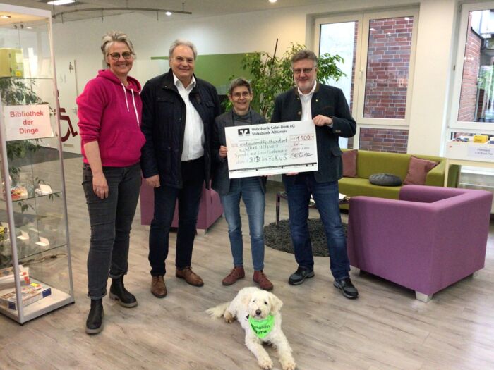 Gute Nachricht für die städtische BIB und viele Schülerinnen und Schüler aus Selm. Dank der abermaligen Unterstützung des Lions Hilfswerk Selm kann die „Hundgestützte Leseförderung“ in der BIB weiterlaufen. Die heimischen Lions unterstützen das Projekt erneut mit 1500 Euro. „Ihr aufgebrachtes Engagement, welches Sie für unsere Selmer Kinder mit Lesedefiziten zeigen, und der erbrachte Nachweis der Verbesserungen durch die hundegestützte Leseförderung hinsichtlich Lesetempo und Lesegenauigkeiten hat uns unsere Entscheidung leicht gemacht, Sie in ihrem Projekt weiterhin zu unterstützen“, erklärte der Vorsitzende des Selmer Lions-Hilfswerks, Christoph Dülberg, bei der Spendenübergabe in Richtung der Leiterin der BIB, Margit Breiderhoff.