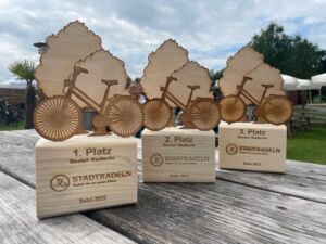 Bei der Siegerehrung gab es Preise in verschiedenen Kategorien. Beeindruckend war zum Beispiel das Abschneiden des besten Teams. Der Heimatverein Selm erradelte mit seinen 121 Teilnehmern insgesamt knapp 40.000 Kilometer. Ebenfalls Rekord war die Kilometerzahl von Jörn Schwering. Er fuhr in den drei Wochen insgesamt 3333 Kilometer auf dem Rad und sicherte sich den Sieg in der Kategorie „Bester Einzelradler.“