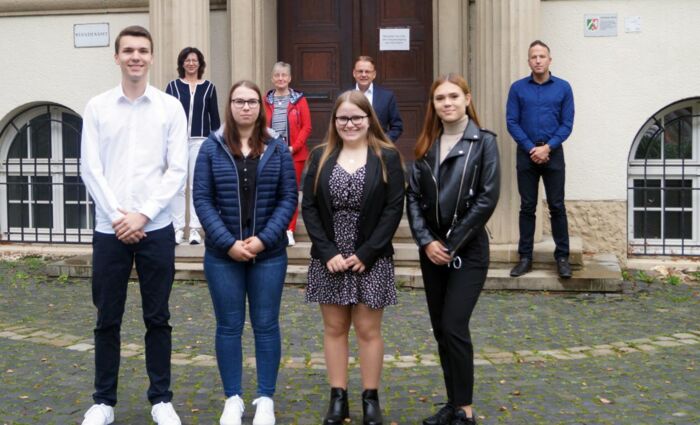 Ihre Ausbildung bei der Stadt Selm zu Verwaltungsfachangestellten starteten nun vier Auszubildende. Bürgermeister Thomas Orlowski hieß alle herzlich willkommen. „Selm ist eine aufstrebende Stadt, die sich weiter gut entwickelt. Daher benötigen wir Mitarbeiter, die sich für die Stadt engagieren.“ Gegen viele weitere Bewerber setzten sich am Ende Alina Albracht, Joana Schneider, Laurine Berka und Nicolas Kohl durch. Dabei hat sich auch die Stadtverwaltung an dem eigenen Projekt „Ausbildung plus 1“ beteiligt und die ursprünglich drei geplanten Ausbildungsstellen noch einmal um eine Stelle aufgestockt. „Sie werden eine tolle Ausbildung hier bekommen. Wichtig ist vor allem der Kontakt zum Bürger“, so Thomas Orlowski.