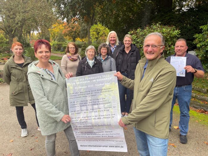 Die Stadt Selm richtet erneut in Zusammenarbeit mit der Hospizgruppe Selm-Olfen-Nordkirchen einen Tag des Friedhofes in Selm aus. 2018 hatte dieser zuletzt in Selm stattgefunden. „In Gedenken – In Gedanken“ lautet das Motto am kommenden Sonntag, 23. Oktober. Die Bedeutung des Friedhofs als Ruhestätte, Ort der Trauerbewältigung, Erholungs- und Lebensraum soll mit dem Tag des Friedhofes Besuchern näher gebracht werden. Der Umgang mit den Themen Tod und Trauer soll zudem enttabuisiert werden.