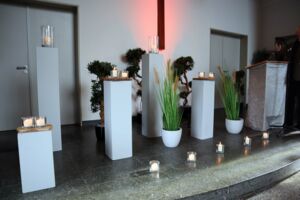 Im Rahmenprogramm gab es unter anderem einen Vortrag der Aktion Pusteblume und musikalische Unterhaltung. Für Kinder wurde eine Friedhofsrallye angeboten. Zum Abschluss gegen Abend wurde der Friedhof durch Illuminationen noch in ein ganz besonderes Licht getaucht. Auch dies öffnete den Blick auf den Friedhof als ganz besonderen Ort der Begegnung.