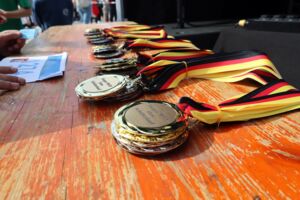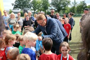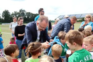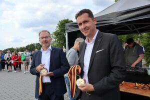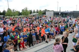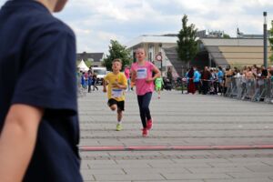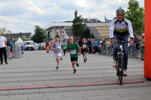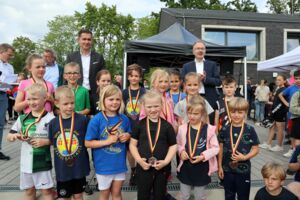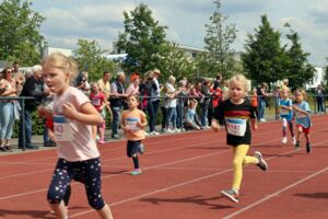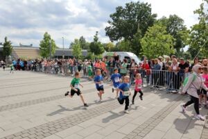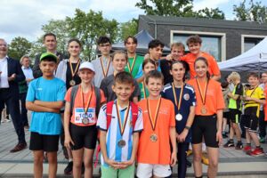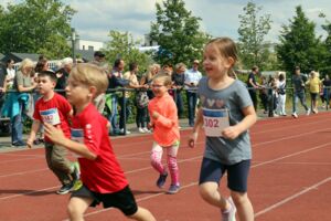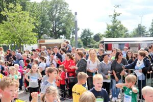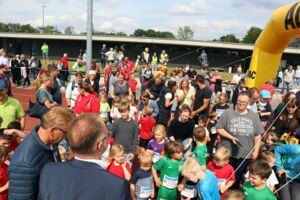Angefeuert von vielen Eltern und Familienmitgliedern waren es aber die kleinsten Teilnehmer, die den Auftakt zum Stadtlauf bereiteten. Die Bambinis liefen ihre 400 Meter im Stadionrund und durften sich am Ende alle über eine Medaille freuen. Bereits einen Kilometer lang waren die beiden Schülerläufe für verschiedene Altersklassen. Diese Strecke war neu in den Stadtlauf aufgenommen worden und erfreute sich sofort großer Beliebtheit. Allein die benachbarte Overbergschule schickte 150 Schülerinnen und Schüler in den Lauf. Auch die beiden weiterführenden Schulen Städtisches Gymnasium Selm und Selma-Lagerlöf-Sekundarschule waren bei dem 2,5-Kilometer-Lauf mit vielen Schülerinnen und Schülern vertreten.