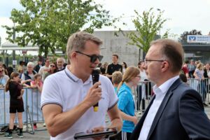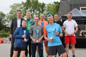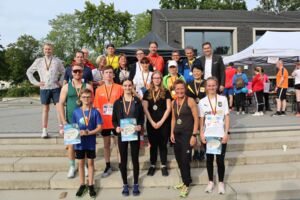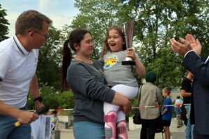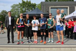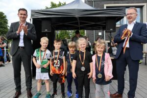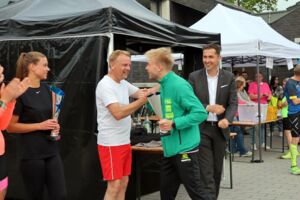 Die Sieger wurden anschließend von den beiden Vorständen der Volksbank Selm-Bork, Martin Potschadel und Thomas Krotki, sowie Bürgermeister Thomas Orlowski geehrt. Ganz besonderer Jubel brandete dann für Sophie Schamott auf. Die Schülerin der Overbergschule sitzt im Rollstuhl und ging damit über die 1 Kilometer an den Start. Für sie gab es einen eigenen Pokal. „Das ist gelebte Inklusion beim Selmer Stadtlauf. Das habe ich selten erlebt“, verkündete Moderator Carsten Sprung, der den gesamten Tag professionell den Lauf am Mikrofon begleitet hatte.