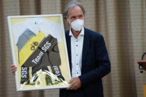 Roter Faden bei der Verabschiedung war das Hobby von Ulrich Walter – das Rad fahren. Vom Förderverein bekam er daher einen Präsentkorb mit Geschenken rund um sein Hobby. Von der Schulpflegschaft gab es neben einem Abschlusszeugnis ein Fahrradtrikot.