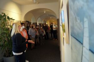 Die Selmer Malerin Wiebke Speer ist experimentierfreudig. In fast spielerischer Form nutzt sie die verschiedensten Techniken der Malerei. Insbesondere ihre bevorzugt mit Acrylfarben entstandenen Werke, aber auch Aquarellfarben und Polychromos-Stifte lassen ihre Werke in ihrer eigenen Sprache erscheinen. Wer sich davon überzeugen möchte, der kann dies ab sofort im Amtshaus Bork tun. In der Galerie im Altbau, 1. Etage, sind einige Bilder von Wiebke Speer bis zum 10. November ausgestellt. Am Mittwoch wurde die Ausstellung mit vielen Gästen und Freunden offiziell eröffnet.