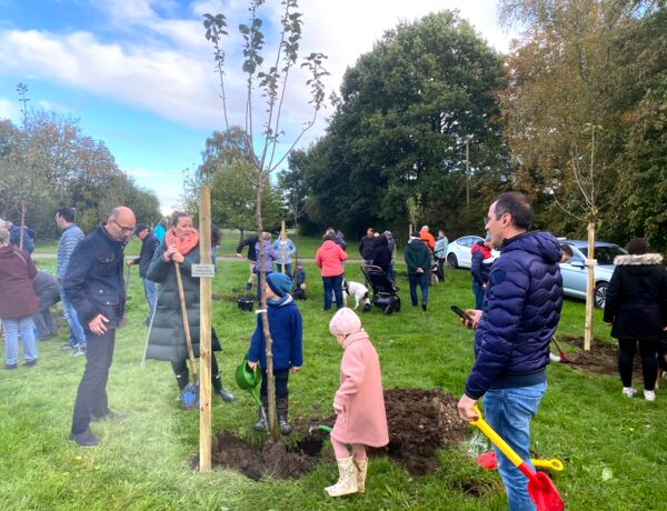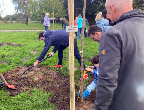Die zweite Pflanzung der „Aktion Baumpatenschaften“ war ein voller Erfolg. Nachdem im vergangenen Jahr entlang des Selmer Baches die ersten 15 Bäume gepflanzt wurden, kamen nun 19 weitere an der Neuen Nordkirchener Straße hinzu. Über 100 Personen waren vor Ort, um „ihren“ persönlichen Baum zu pflanzen. Diesmal stand eine Fläche in der Nähe der Funne für die Aktion bereit.